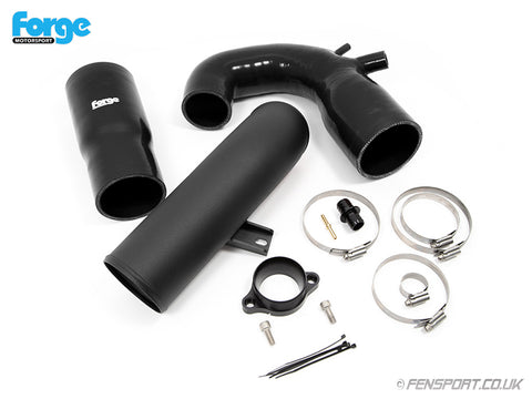 Forge Motorsport offer the whole inlet pipe work as one complete package, which consists of a billet machined turbo adaptor, two 5 ply silicone hoses and mandrel bent alloy hard pipe and necessary hose clamps and fittings.