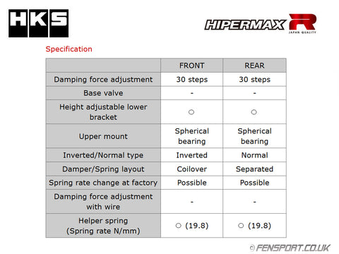 - Spring Rate Front: 12 kgf/mm, Rear 18 kgf/mm