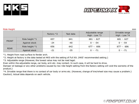 - Height range Front: 0 to -54mm, Rear: 0 to -71mm