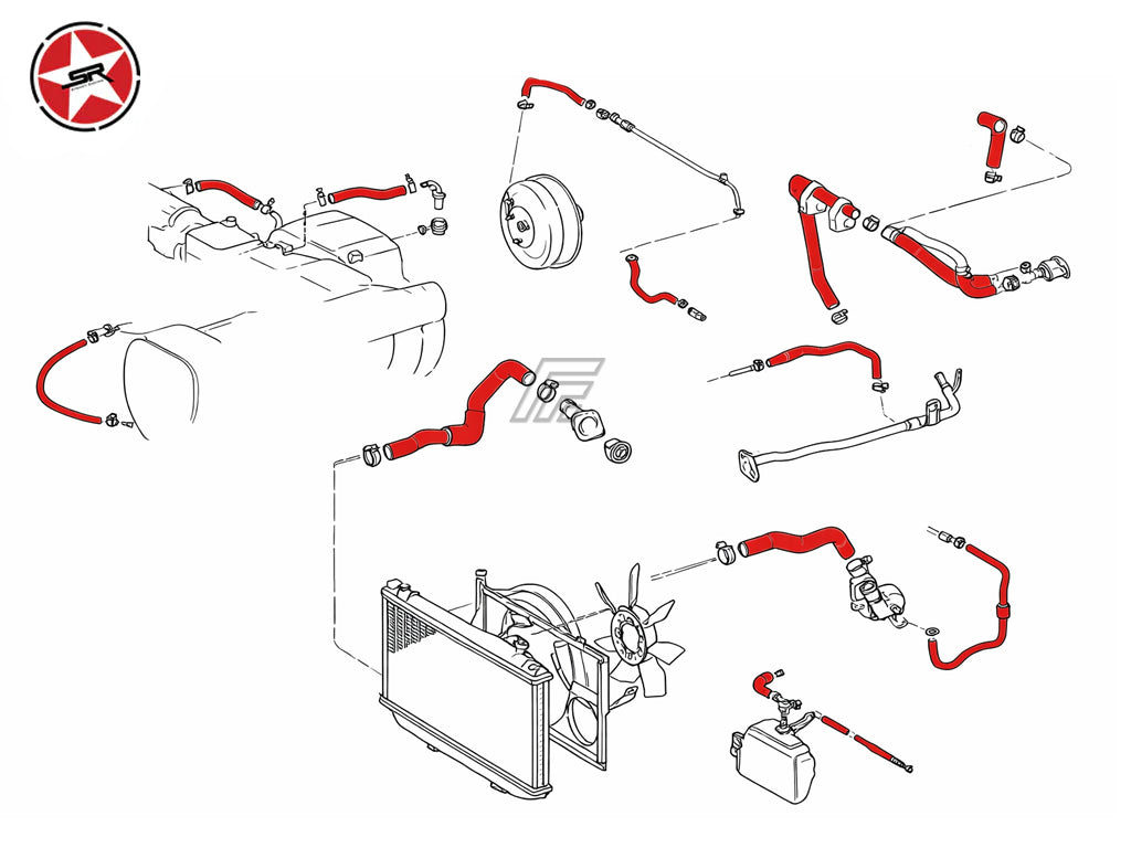 Stoney Racing Radiator Coolant & Breather Hose Kit for Supra JZA80 NA - Non VVTi